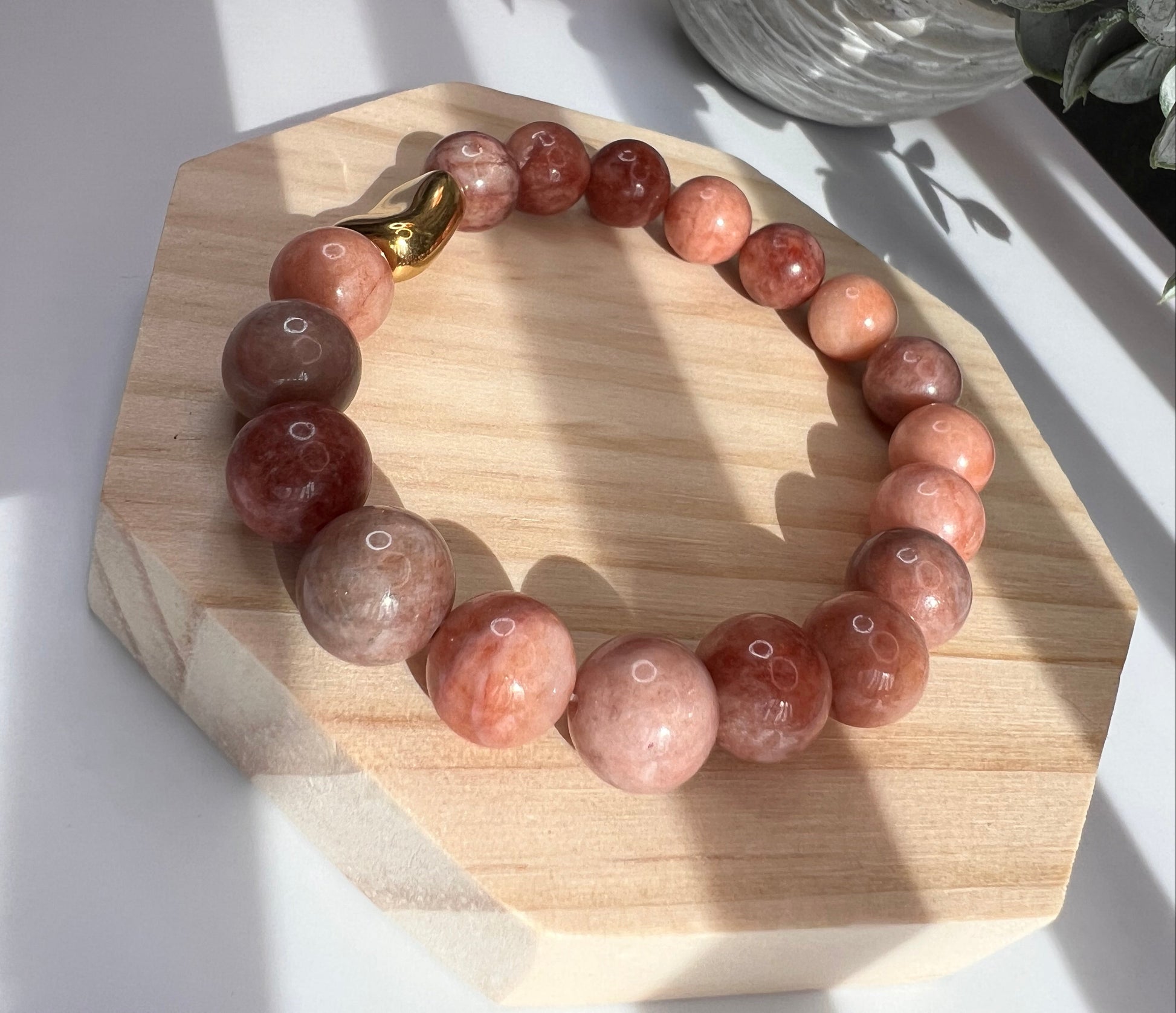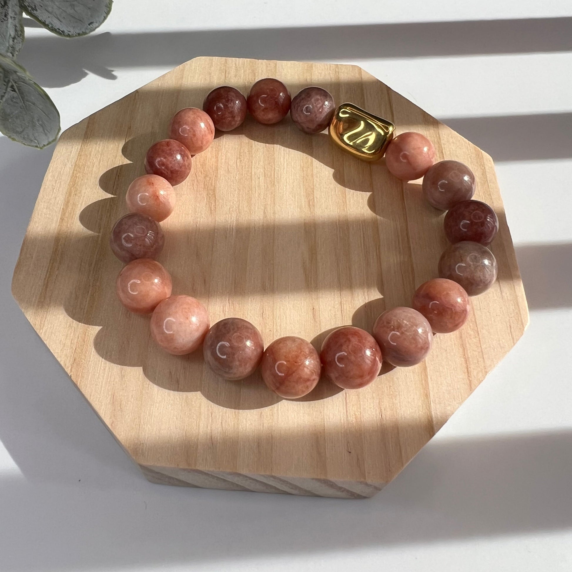 Natural sunstone beads paired with a refined gold-plated accent, creating a bracelet that radiates joy, vitality, and timeless style
